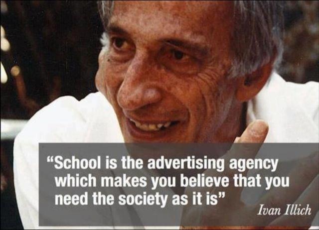 The Austrian philosopher, New York parish priest and social critic of Western institutions, Ivan Illich (1927-2002), is perhaps best known for his study of state-sponsored schools and his innovative ideas about education published in his seminal work, Deschooling Society. Though a left/liberal and strong supporter of John F. Kennedy, making observations about what he considered to be a basically industry-dominated educational system in the years before and after the Secoond World War, his ideas are applicable to all kinds of state-controlled schooling systems, as best epitomised by his classical statement: